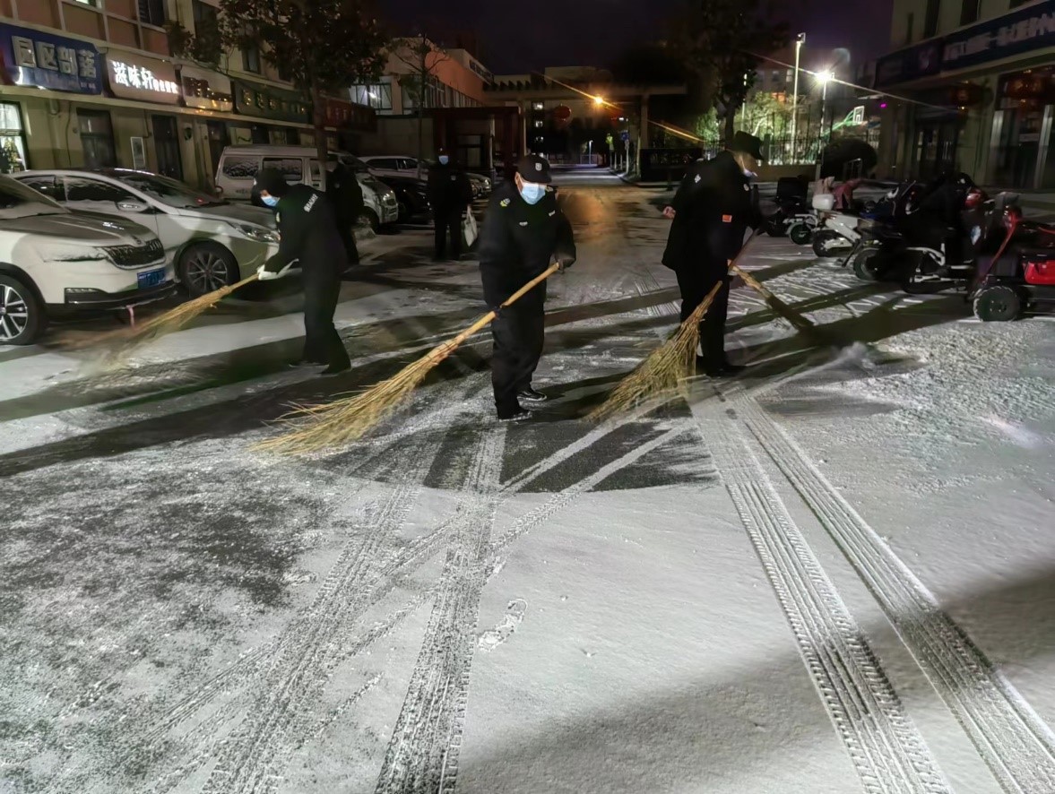 由于夜間雪情,道路積雪結(jié)冰,14日夜間,公司啟動(dòng)應(yīng)急預(yù)案,調(diào)集現(xiàn)場(chǎng)人員,利用掃把、鐵鍬針對(duì)各道口、坡道及主要行人路段開(kāi)展作業(yè),確保各項(xiàng)目道路通行順暢。