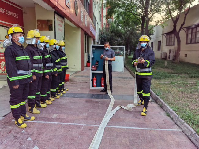 自蘇宿工業(yè)園區(qū)專業(yè)應(yīng)急救援隊伍集中授旗以來,公司按照“專兼結(jié)合、一隊多用、一專多能”要求,著眼社區(qū)應(yīng)急救援應(yīng)對,建立了由一線安保人員組成的應(yīng)急救援隊伍,做到24小時戰(zhàn)備值班,按照日訓(xùn)練、周培訓(xùn)、月演練的模式,定人定物開展專項訓(xùn)練,強化隊伍的身體素質(zhì)及裝備的操作使用。