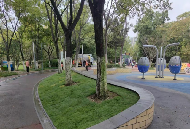 截至目前,在補植方面,補種草坪、麥冬3500平方米,補植大葉黃楊、金邊黃楊、紅葉石楠等2200平方米,補植各類喬木紫葉李、海棠、櫸樹等125株,撒播草坪草籽3.7萬平方米;在養(yǎng)護(hù)方面,修剪喬灌木1.1萬株、清理枯枝、死樹2500株,清理綠化帶落葉、雜物8.2萬平方米。
