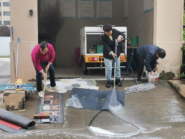 地墊雖小,但每進出家門,門口的地墊都是第一個迎接您的“家人”,它能起到清潔、防滑作用,但存在不好洗、晾曬難的問題。為解決業(yè)主的難題,5月5日,夢家園物業(yè)服務中心聯合建發(fā)公司黨支部、夢家園小區(qū)黨支部開展為居民免費清洗地毯的便民活動。