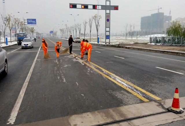 11月24日,小雪節(jié)氣剛過,宿遷便迎來了一場突如其來的小雪,雖然路面積雪不多,但伴隨著凜冽的寒風,氣溫驟降,次日早晨部分路面仍存在結冰現(xiàn)象,加上路面落葉較多,環(huán)衛(wèi)工人天未亮就走上街頭開始除雪化冰,對于他們來講,這注定又是忙碌的一天,經過3個小時緊張而有序的忙碌,基本完成了園區(qū)主次干道的清掃工作。
